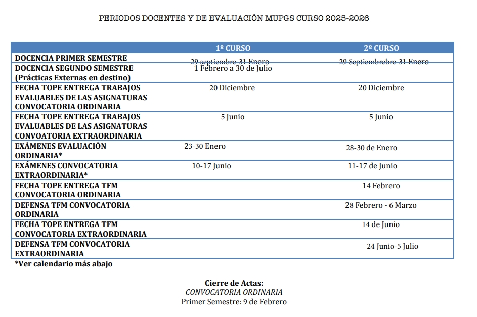 La fecha de inicio de las clases y horarios serán actualizados en el apartado ‘Organización docente’ de la web del Máster