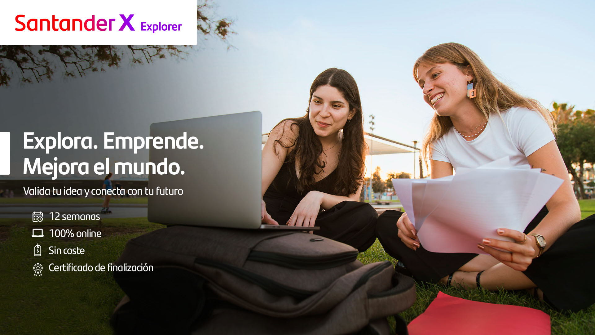 Emprender no es para todo el mundo; Santander X Explorer, sí. Concédete doce semanas para intentarlo, equivocarte, aprender, inspirarte… pero, sobre todo, para convertir tu idea en algo tangible, entender si podría llegar a ser una potencial fuente de ingresos y, además, hacerlo acompañado/a de gente que, como tú, no se conforma con el mundo en el que nos ha tocado vivir.
