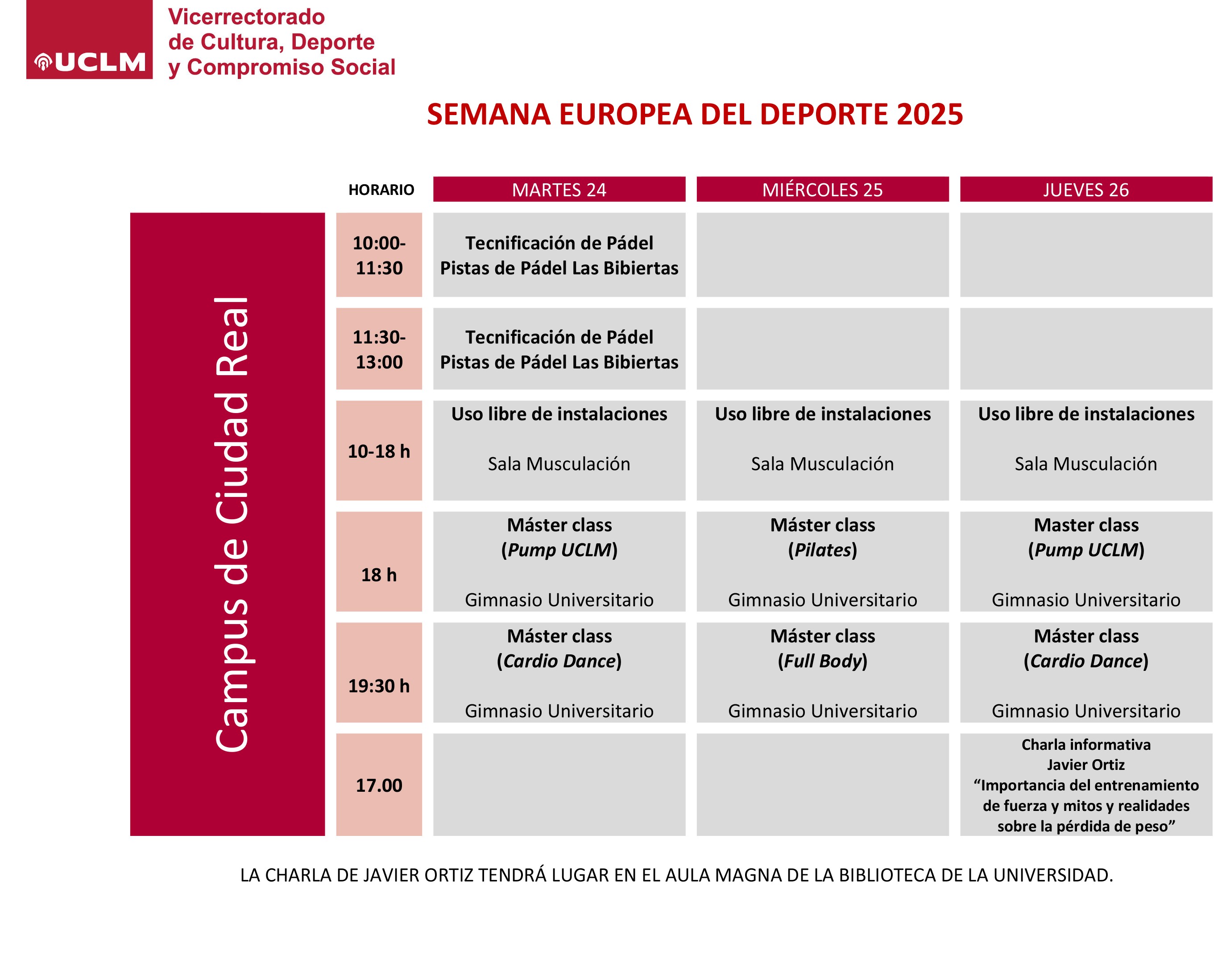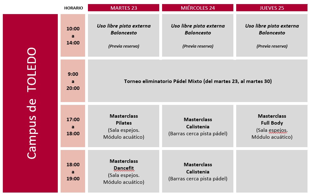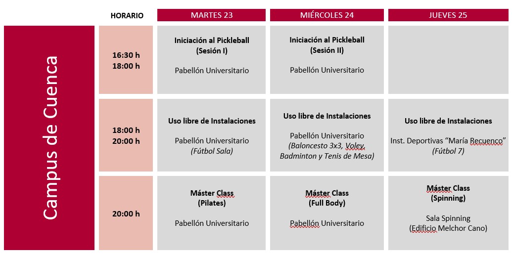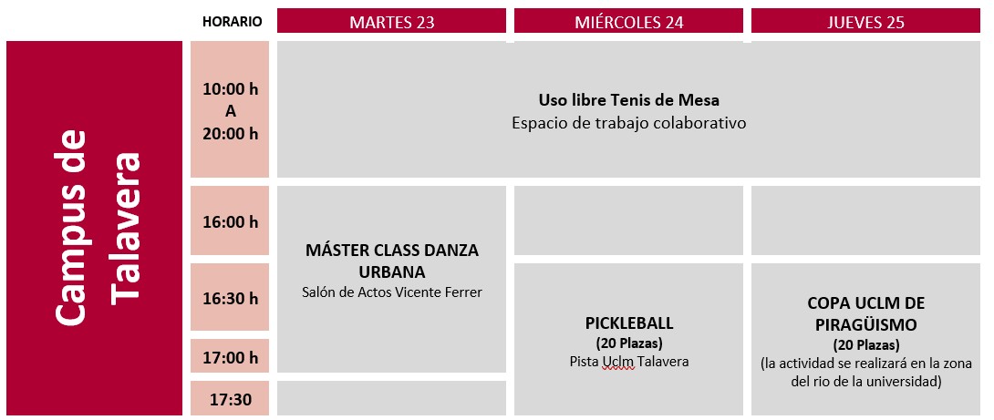 *Para la realización de cualquier actividad es obligatorio la presentación de la Tarjeta Universitaria UCLM.