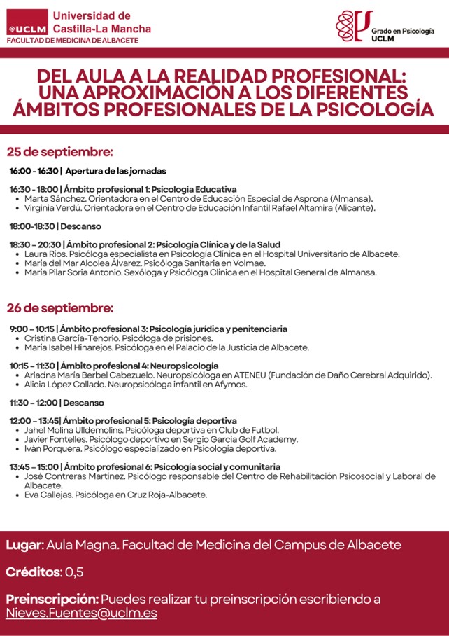 Lugar: Aula Magna de la Facultad de Medicina (Campus de Albacete)
