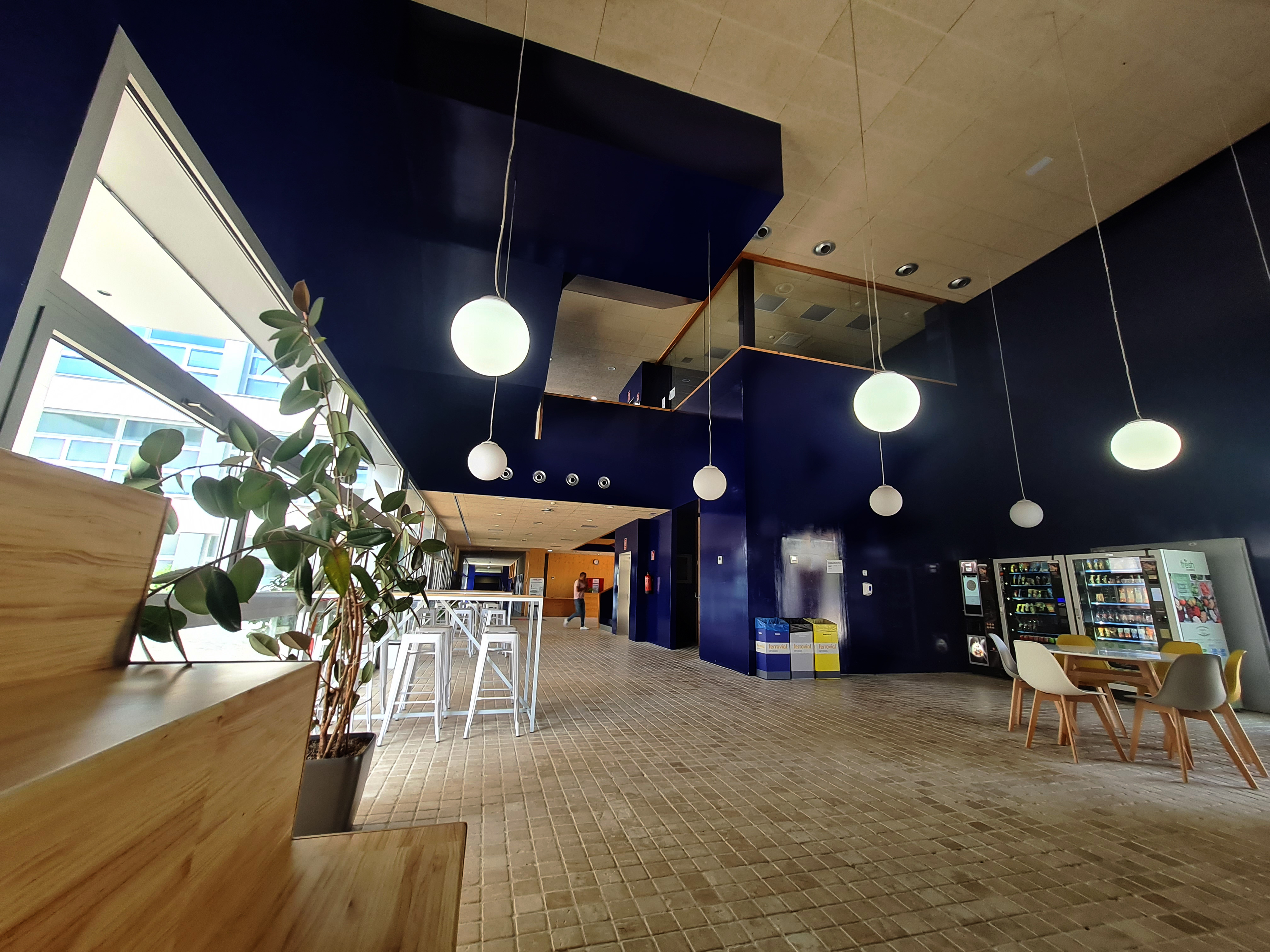 La Facultad cuenta con una amplia zona de uso común en el hall de la entrada al edificio principal. Esta zona está dotada con máquinas de café y snacks, además de fuentes refrigeradoras de agua. La zona se ha dotado de amplias bancadas, mesas y sillas, para que los alumnos puedan descansar entre clases, o incluso mantener reuniones de trabajo.