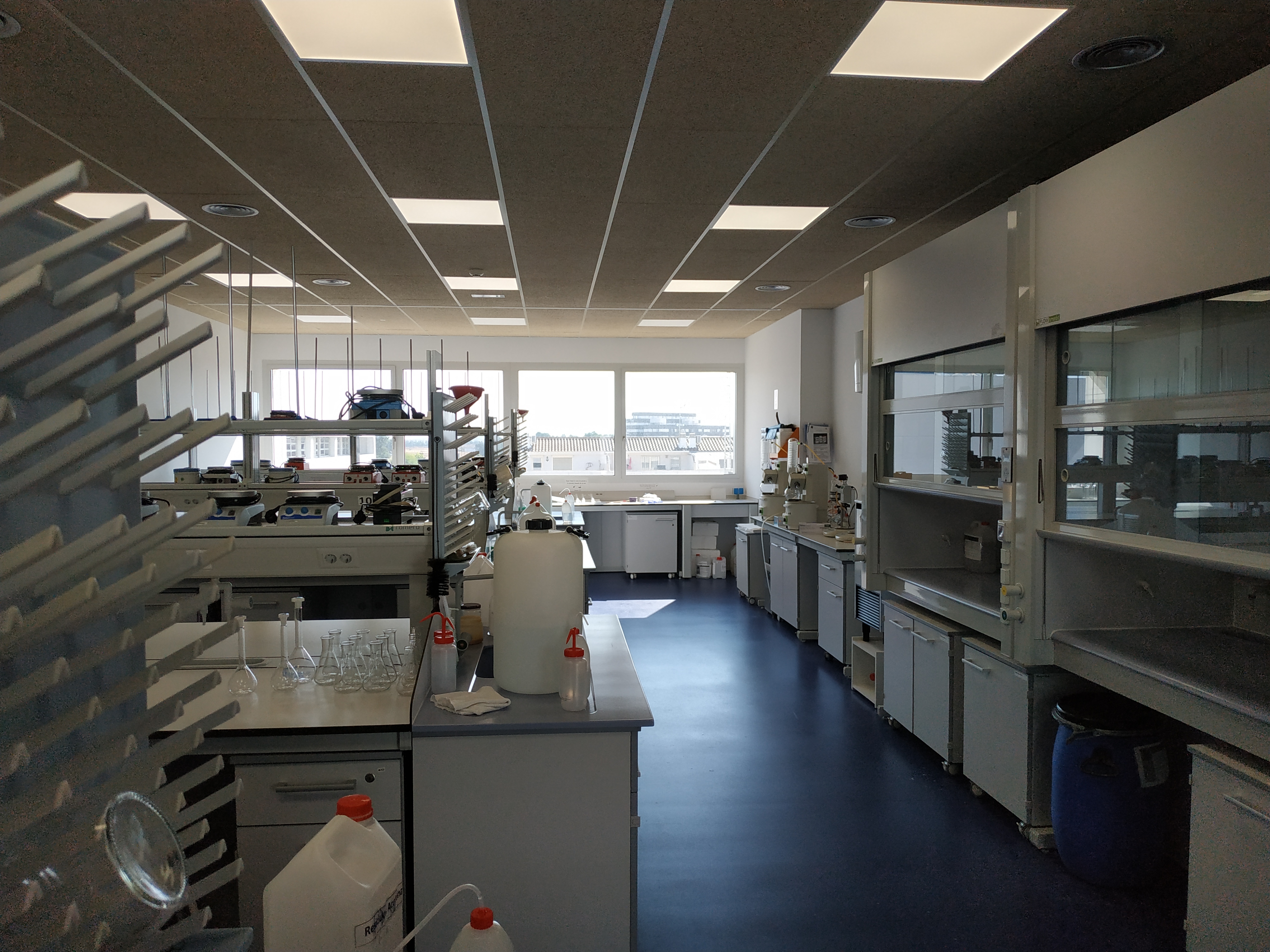 El Tecnolab, es un laboratorio de Tecnología Farmacéutica para un máximo de 30 alumnos, cuyo diseño va encaminado hacia la transformación de drogas y principios activos en medicamentos de fácil administración. Por ello, en este laboratorio se imparten las asignaturas Tecnología Farmacéutica I, II, y III, y Biotecnología.