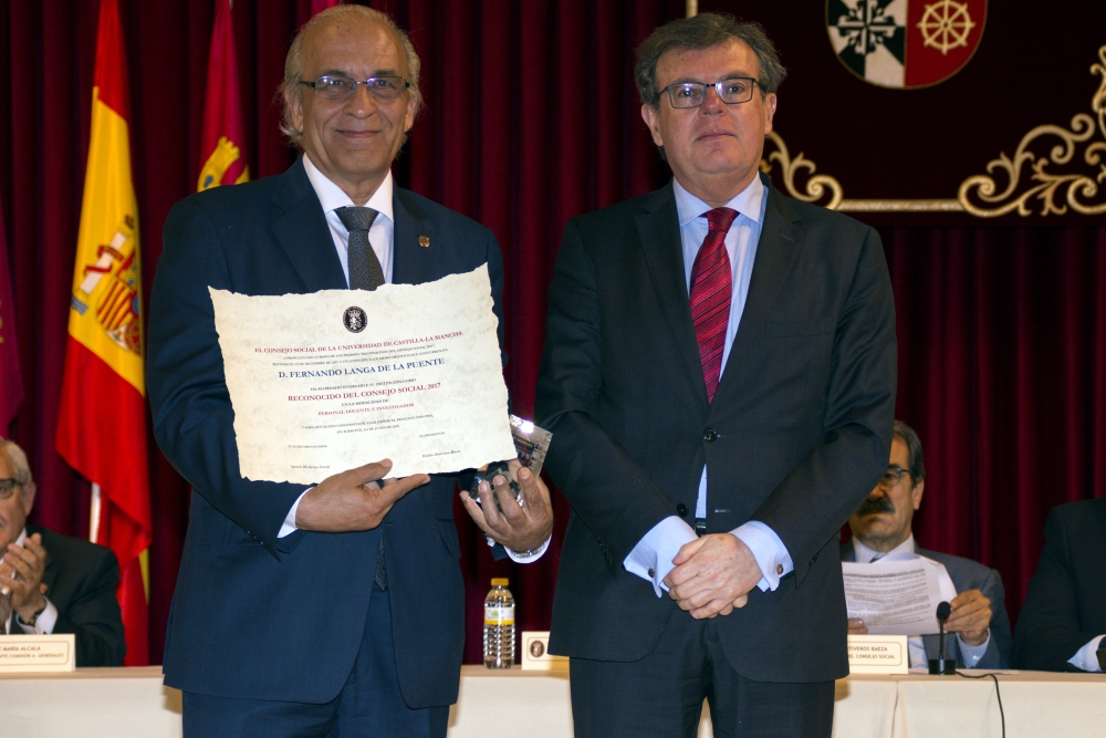 El Consejo Social, como parte de su Plan de Actuación, anualmente reconoce públicamente el meritorio trabajo de personas y grupos de nuestra comunidad académica, así como la colaboración de entidades del tejido económico y social de la región que han destacado por su apoyo a la Universidad de Castilla-La Mancha.