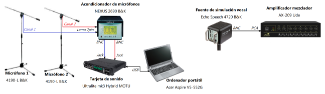 4. La fuente de simulación vocal se coloca conectada al armario de los equipos que controlan la megafonía para evaluar el refuerzo sonoro.
