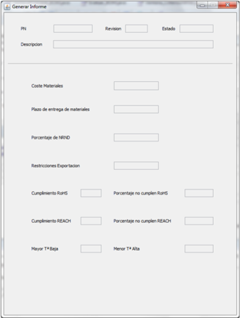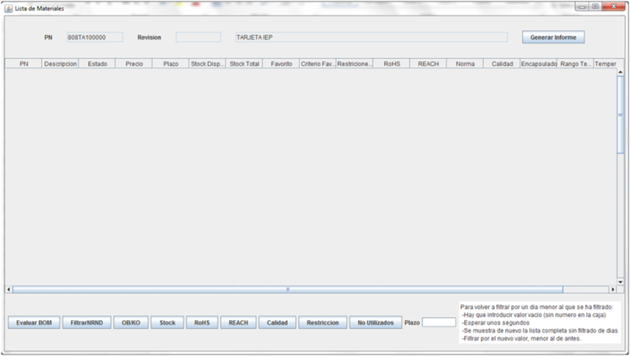 Informe (Recopilación información). La tercera parte de la aplicación muestra un informe de la BOM, en el que se detalla la información más relevante según los criterios de los ingenieros hardware de la empresa.