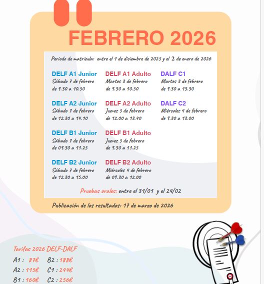 • Niveles DALF C1 y C2 Adultos: en Albacete, Ciudad Real, Cuenca y Toledo