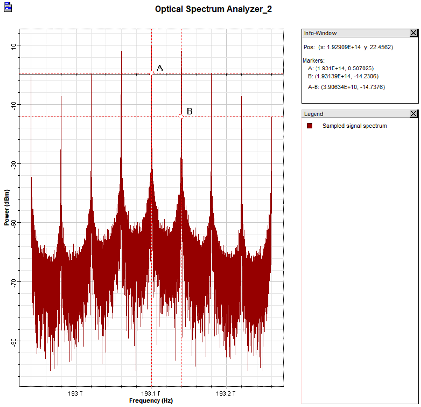 A continuación, se aprecia como se verían las respuestas del espectro óptico de uno de los sistemas QKD simulados.