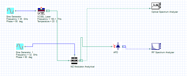 Circuito VCSEL + MZM en Optisystem.