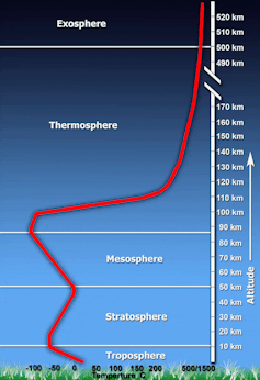 Estructura de la atmósfera terrestre según la variación de la temperatura con la altitud.