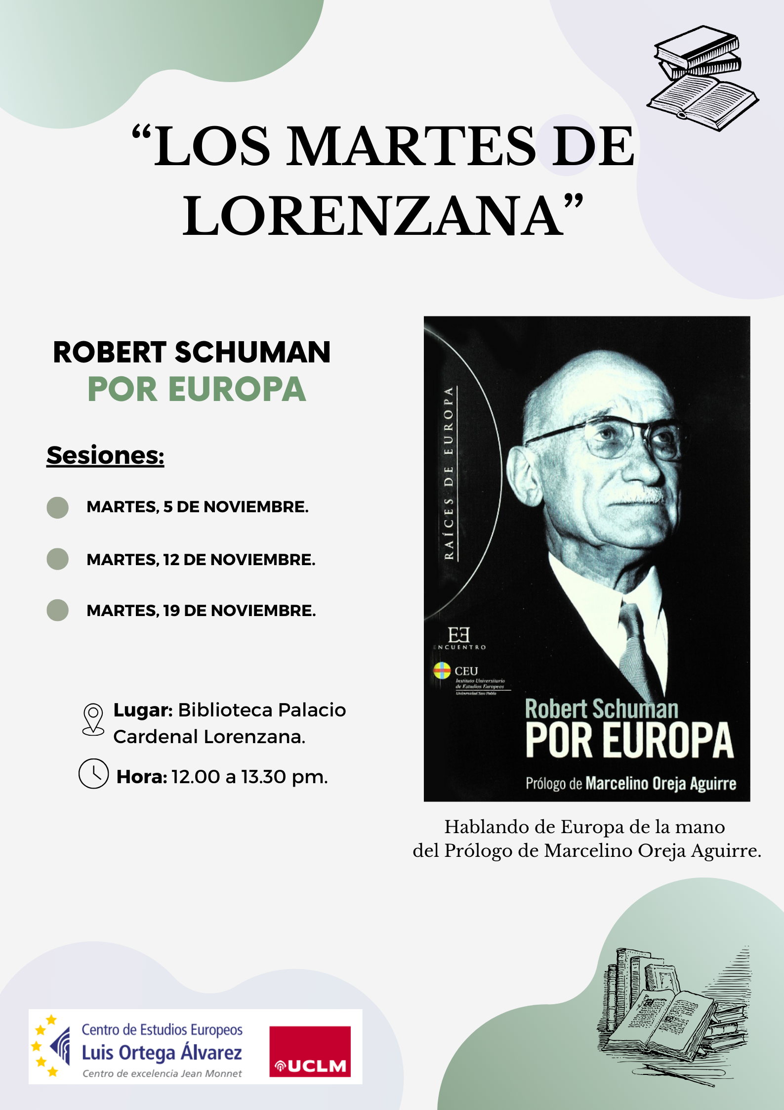 Para profundizar en los orígenes de la UE, durante tres martes del mes de noviembre se llevo a cabo una reflexión sobre diferentes aspectos de la Unión Europea de la mano de las memorias de Robert Schuman, uno de sus padres fundadores.